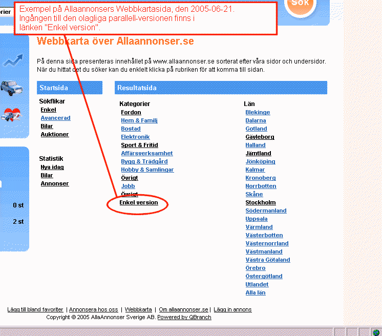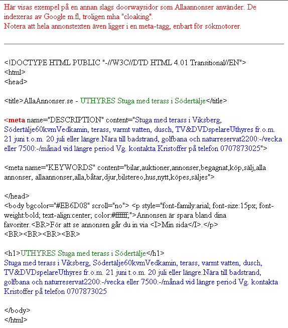 Allannonser visar ett annat sidinnehåll till sökmotorer än till vanliga besökare (det är tekniskt sett mycket enkelt att