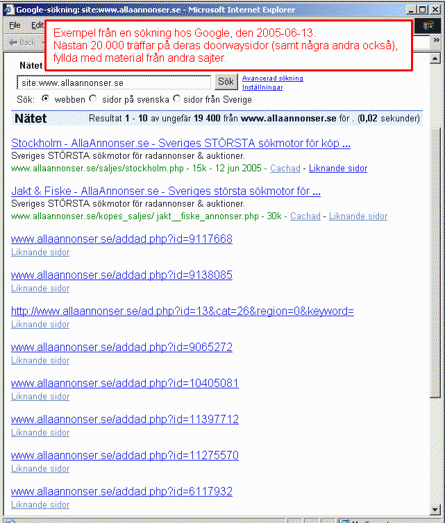 doorwaysidor), som innehåller hela annonstexterna från de indexerade